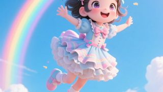 AI作品データ ちびガールが空を飛ぶ 空飛ぶちびガール。猫が大好き。ロリータファッションで大空を旋回しながら飛ぶ。下から飼い猫のトラが追いかけて飛んできます。 2025.09.08 AI作品データ女性作品(アニメ・実写)
